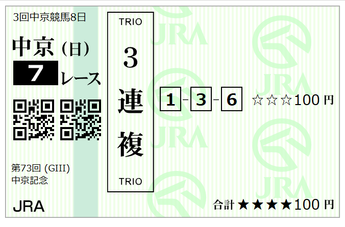 中京記念、①マピュース ⑥ジューンオレンジ 2頭引いたのに。。。③軸にしてもた
