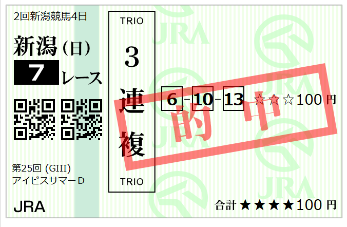 そして札幌は軸は当たったが、2着3着と内枠で×